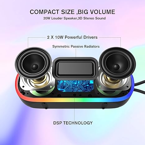- Support True Wireless Stereo Sound:Support Dual speakers connect wireless in sync on bluetooth mode, 360° stereo sound and Double 20W loud Sound may bring you cinema experience,Perfect for home party and friend gathering.