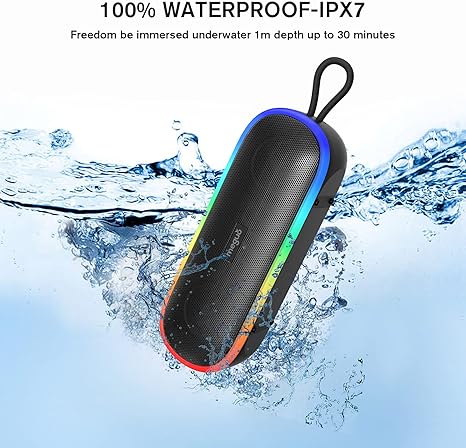- 100% IPX7 Waterproof:This portable wireless speaker is designed really waterpoof.The small loud speaker is splashproof, waterproof, and rainproof,definitely a wise choice for your summer fun! Try to think, bring the speaker for pool party , beach party, camping,hiking, climb,biking ,will be more fun more exciting.